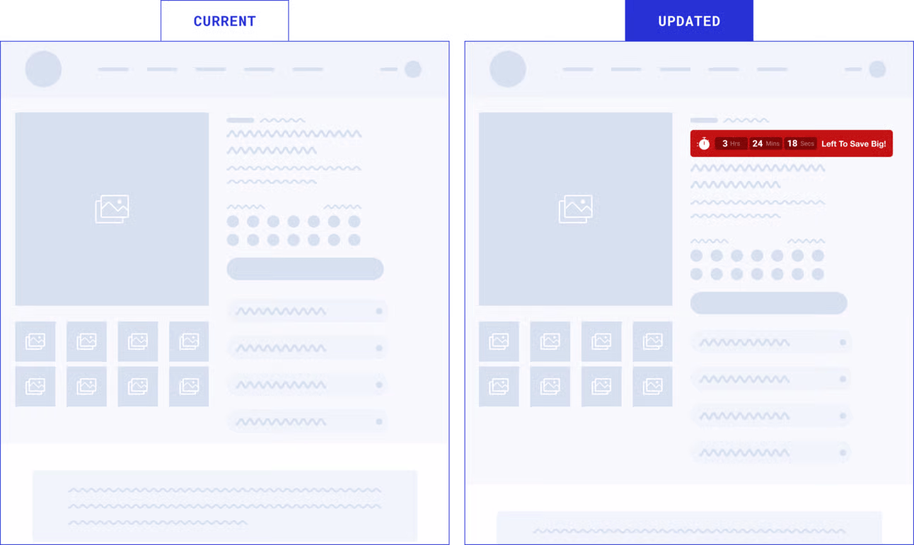In the final hours of a countdown, youâll see a big bump in your conversion because people donât wanna miss out. Donât make a six week counterâthatâs not urgent. But you can win when your counter has a daily or biweekly element to it.